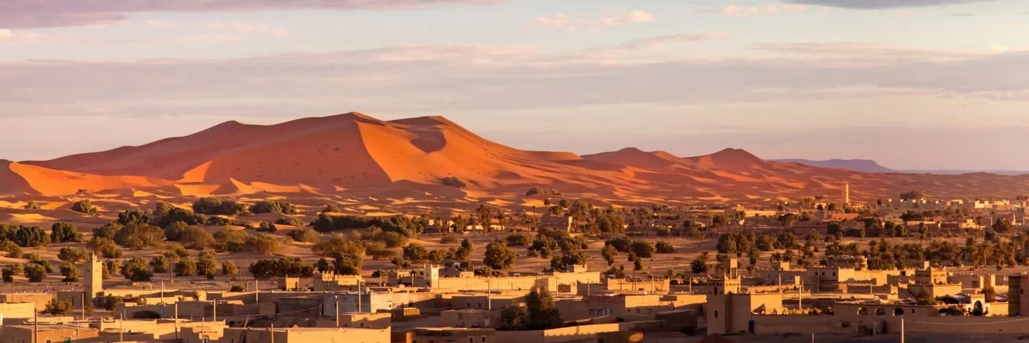 In the morning we will enjoy breakfast and the sunrise from the great dune then travel to Errachidia back to the Airport and see on the way the landscapes at first lights of the Day.